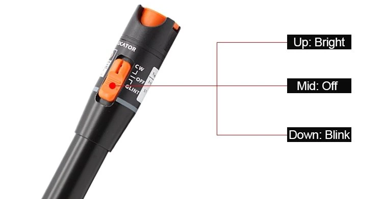 Визуалният локатор на повреди от типа Pen може да работи или в непрекъснат вълнов режим (CW режим), или в импулсен режим. Импулсният режим помага при локализиране на повреди при условия на силна околна светлина и подобрява живота на батерията. Може също да се използва за проверка на качеството на конектора. Често конекторът може да изглежда перфектен. Но вътре в самата накрайник на конектора лошото залепване или мръсотията може да създаде микро-огъване във влакното. Това микро-огъване ще доведе до прекомерни загуби при вмъкване или загуби при връщане и може да доведе до преждевременна повреда на конектора. Докато визуалната светлина преминава през влакното, излиза от въпросния конектор, човек може лесно да види изкривяването като поредица от пръстени, насложени върху нормален изход. Огъването или усукването на влакното може да повлияе на общия модел на интензитет, но не и на самия пръстен.